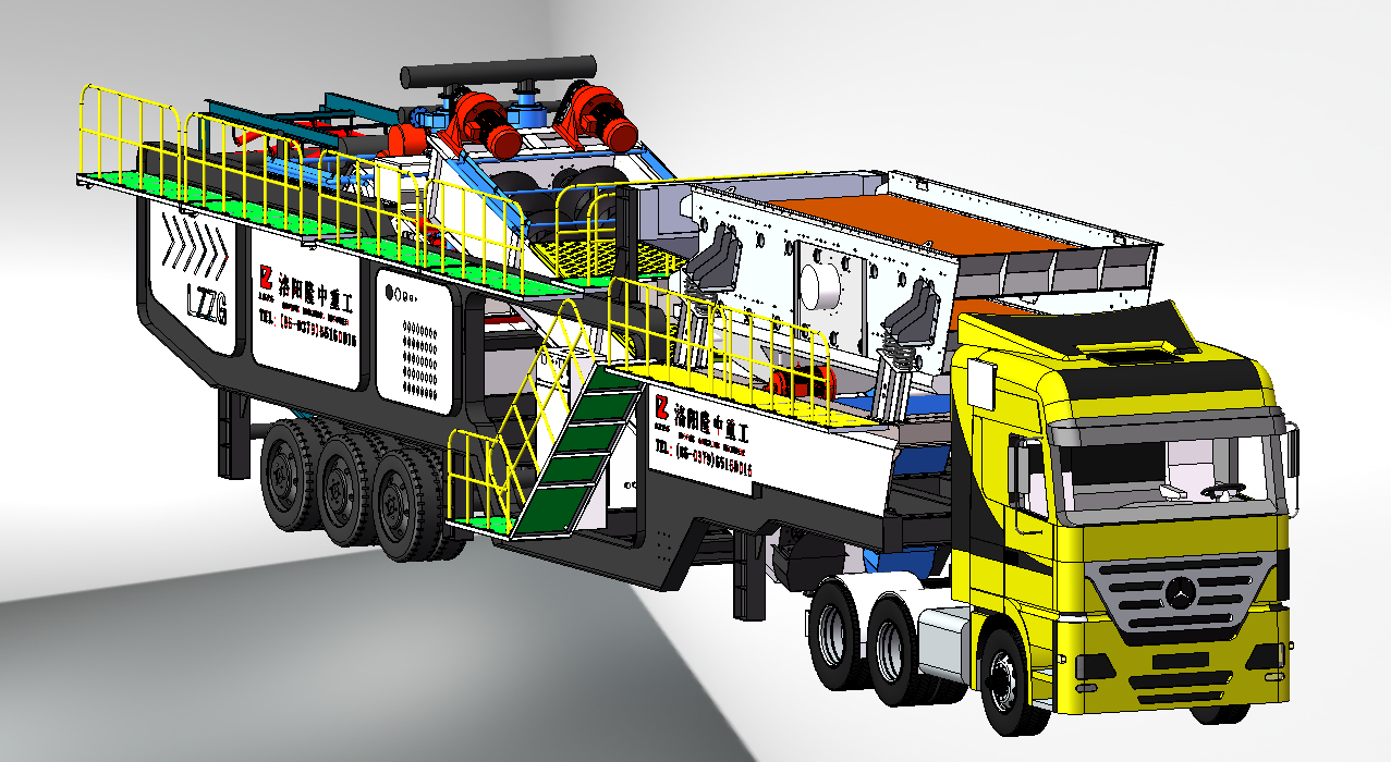 一臺移動車上不光配置單臺洗沙設備,針對小型的機器設備,也可在一臺移動車配置兩臺洗沙設備,一臺車可以當作整條生產線,但這樣的生產線通常生產量不高。此外,像協助機器設備振動給料機、篩分設備,也是能夠和洗沙機一樣同時合理的配置到移動洗砂機的機架上,針對大型石子廠,通常篩分設備是單獨配置一臺車的。
